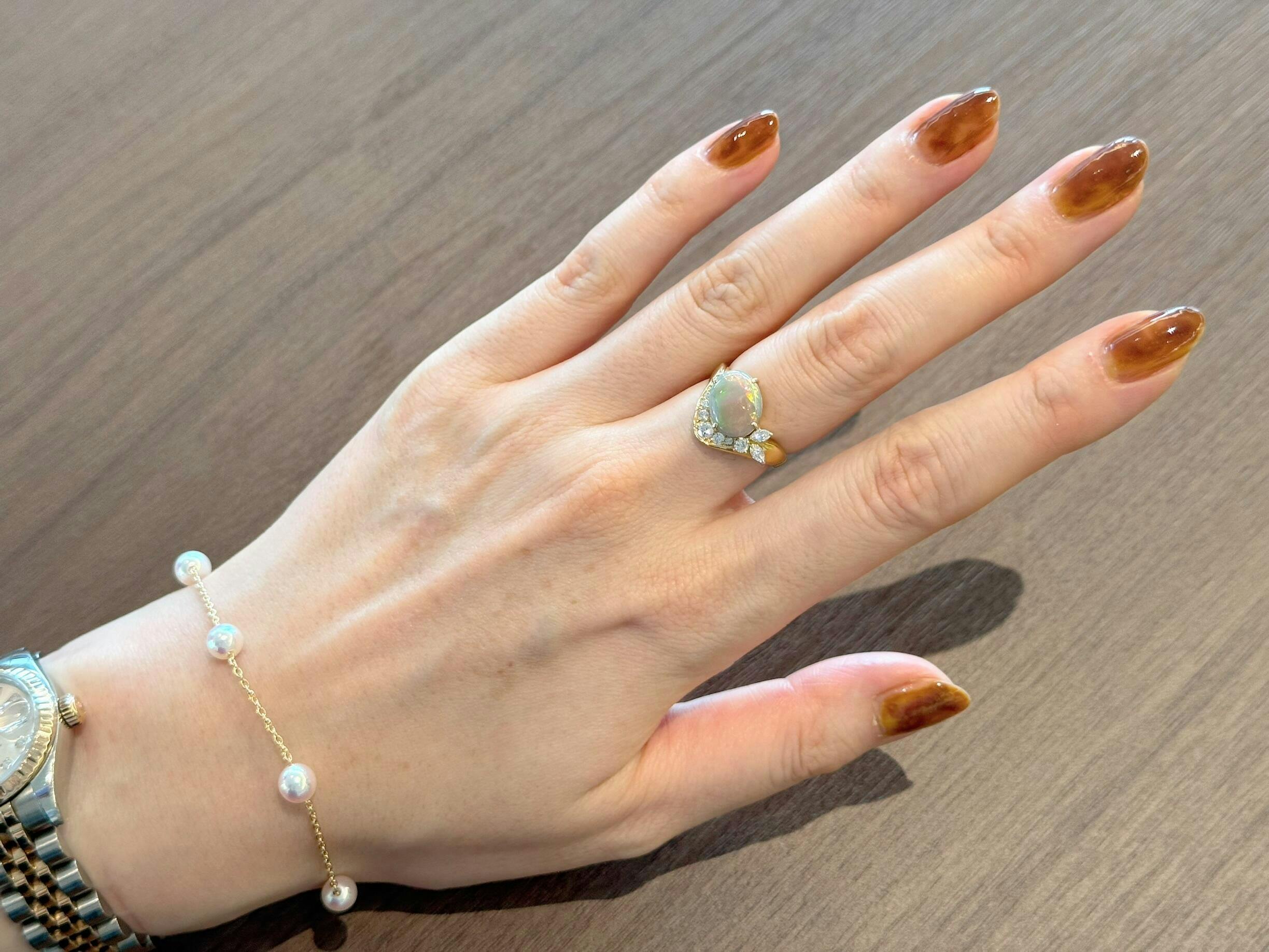 珠の美しさとその存在感はもちろんですがゴールドの部分もとてもツヤツヤしていて付けた感覚、指馴染みがよく、いつも付けっぱなしにしているジュエリー全て外してこれだけにしてみても素敵なのでは…と思うくらい見惚れてしまいました。